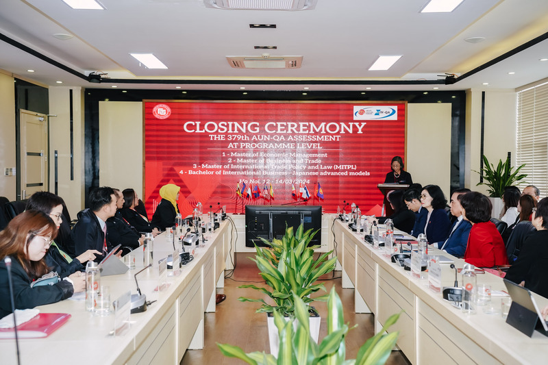 Ngày 14/3/2024, sau 3 ngày làm việc nghiêm túc, khẩn trương, trường ĐH Ngoại thương đã phối hợp với Mạng lưới các trường Đại học Đông Nam Á (AUN) tổ chức Bế mạc đợt kiểm định lần thứ 379 cho 04 chương trình đào tạo (CTĐT) của Nhà trường theo tiêu chuẩn AUN - QA gồm: CTĐT trình độ đại học Kinh doanh quốc tế theo mô hình tiên tiến Nhật Bản; CTĐT thạc sĩ ngành Kinh doanh thương mại theo định hướng ứng dụng; CTĐT thạc sĩ Chính sách và Luật thương mại quốc tế (MITPL ), ngành Kinh tế quốc tế theo định hướng ứng dụng; CTĐT thạc sĩ Quản lý kinh tế theo định hướng ứng dụng.