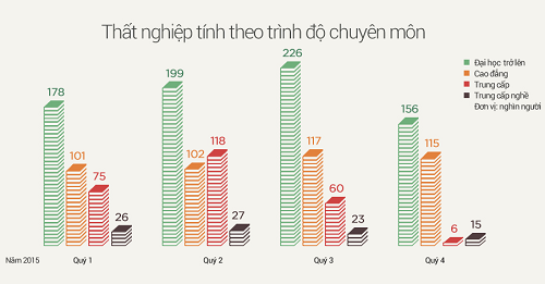 Theo số liệu của Tổng cục thống kê năm 2015, người có trình độ đại học thất nghiệp nhiều nhất. Đồ họa: Tiến Thành